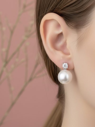 ₹1,699.00Original price was: ₹1,699.00.₹1,249.00Current price is: ₹1,249.00.These pearl earrings are made with sterling silver, featuring big white pearls paired with zircon studs. The pearls are round and smooth, giving off a classic, elegant vibe. The zircon studs on top add a bit of sparkle to the overall design. Perfect for daily wear and giving you a classy look.- SKU ID- KJER2340