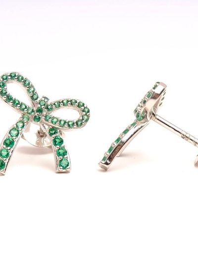 925 Sterling Silver Bow Shaped Emerald Stud Earrings