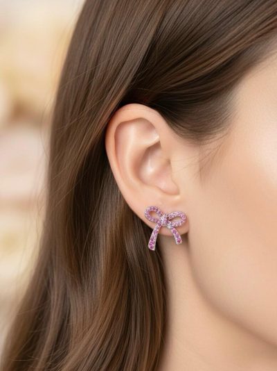 ₹1,699.00Original price was: ₹1,699.00.₹1,510.00Current price is: ₹1,510.00.These bow-shaped earrings made of sterling silver, and they've got a pop of pink ruby stones that add a chic touch to the design. These earrings seem like a stylish accessory for adding some sparkle to an outfit.- SKU ID- KJER2349