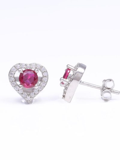 925 Sterling Silver Floral Motif Earrings White Zircon, Ruby Sterling Silver Stud Earring