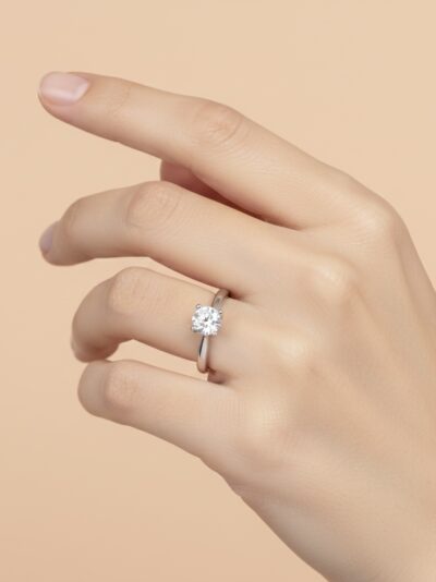 ₹3,449.00Original price was: ₹3,449.00.₹1,749.00Current price is: ₹1,749.00.The ring is a sterling‑silver solitaire setting with a simple, sleek band that tapers slightly toward the top. It holds a round, brilliant‑cut clear stone (cubic zirconia) secured by four silver prongs, giving it a classic, minimalist engagement‑style look that highlights the center gem’s sparkle.- SKU ID- KJRG1474
