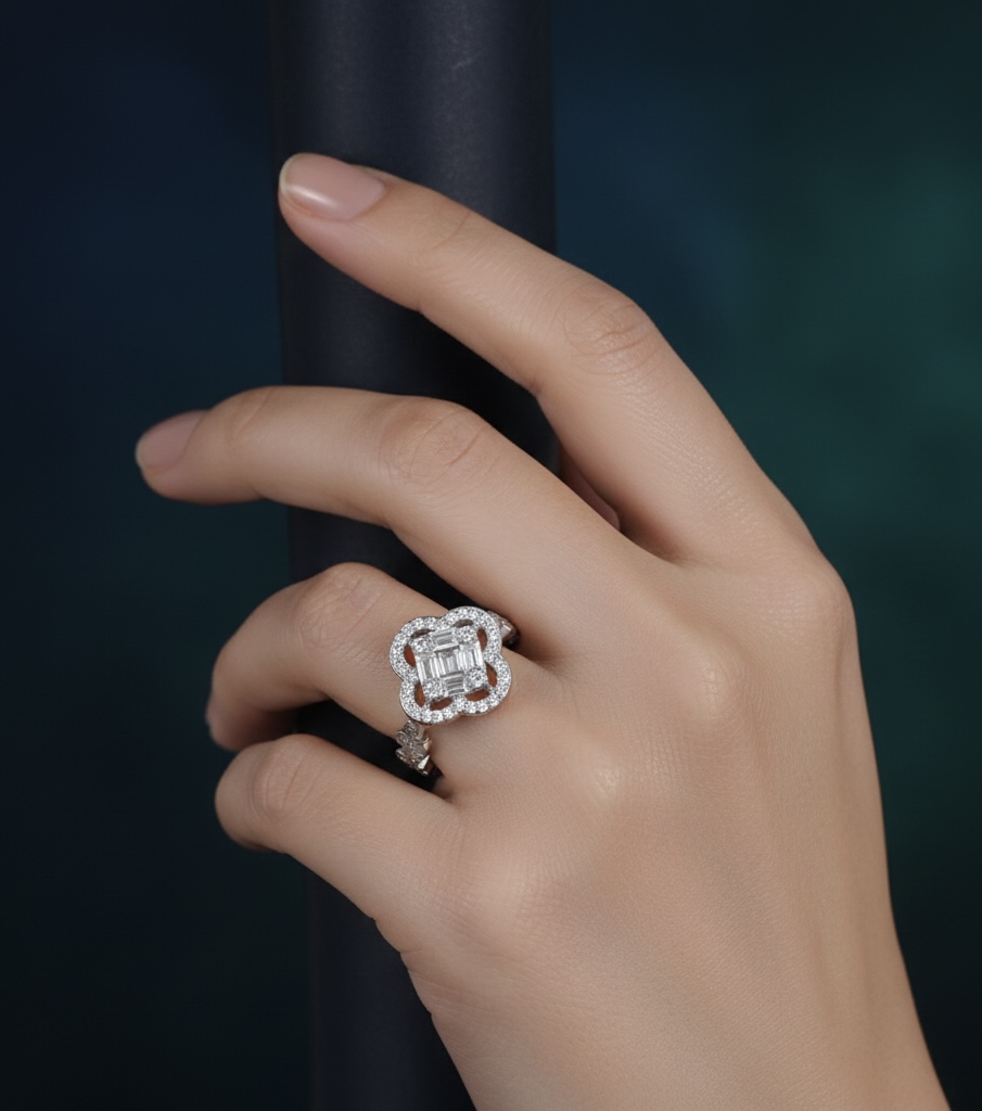 925 Sterling Silver Flower Motif Shaped Ring