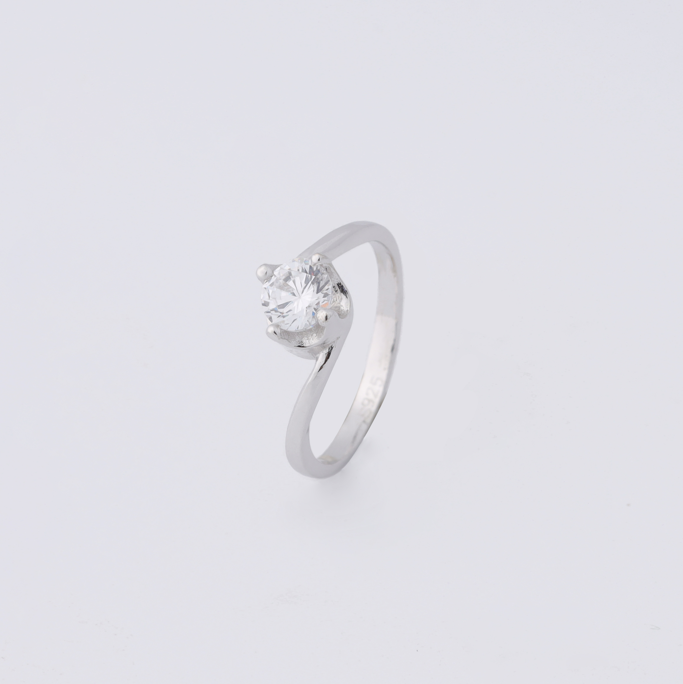 925 sterling‑silver ring with a round, brilliant‑cut zircon