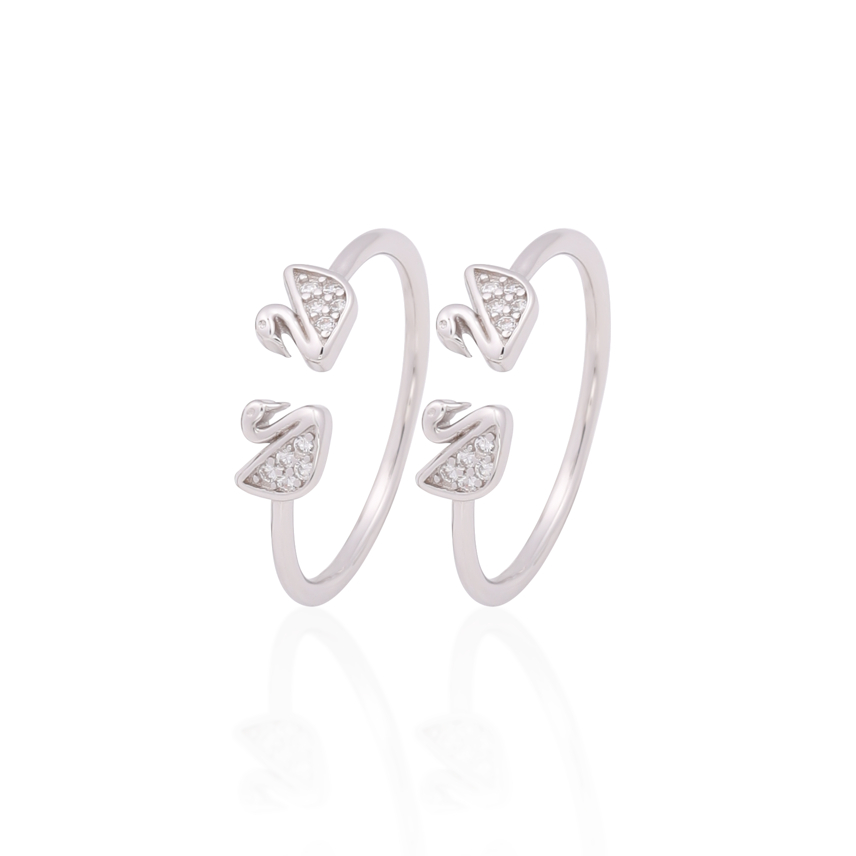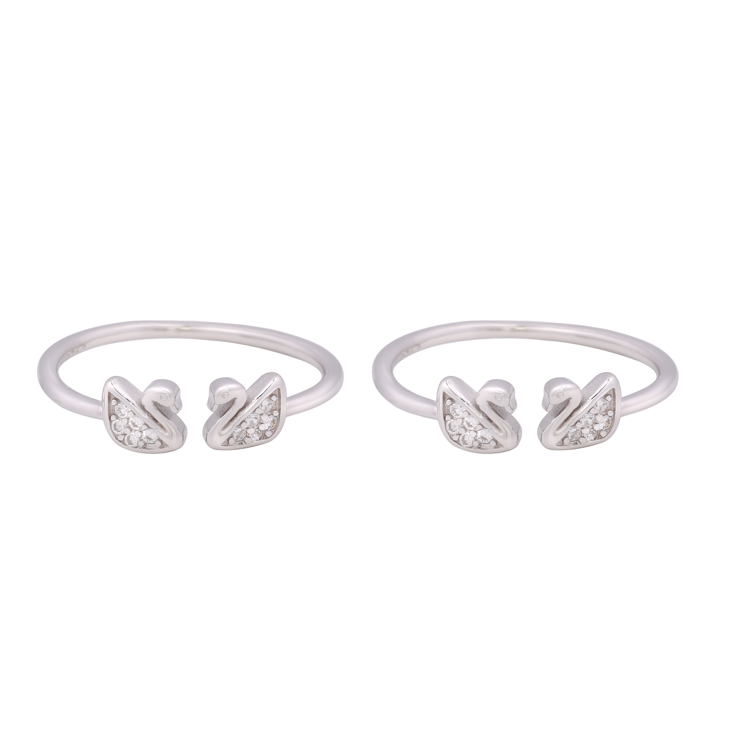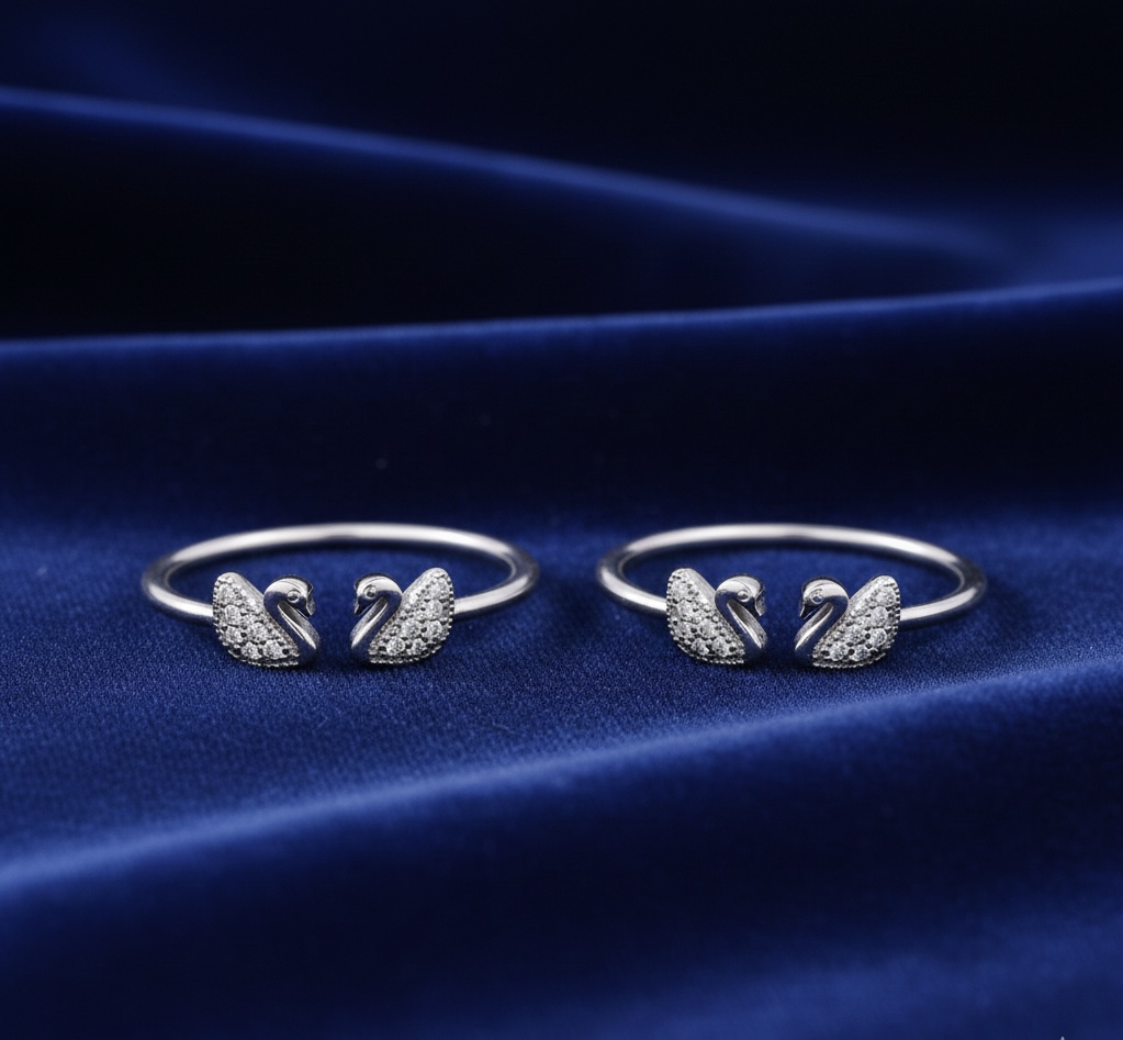 The toe‑ring is a sleek, sterling‑silver design crafted for everyday comfort. It features two intertwined swan motifs set on a thin, adjustable band, with each swan’s wing inlaid with sparkling zirconia or crystal stones that add a touch of shine. The silver is polished for a bright finish, making the piece lightweight and hypoallergenic—ideal for daily wear on the toes. The double‑swan charm gives it an elegant, romantic look that stays secure and stylish all day.
