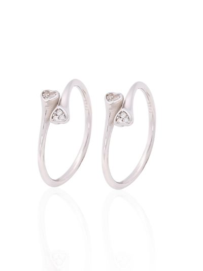₹2,799.00Original price was: ₹2,799.00.₹1,399.00Current price is: ₹1,399.00.A pair of toe-ring featuring a minimalist, elegant design made of sterling silver. Every ring has two charms- a round, clear zirconia stone set in a six‑prong mount. And a heart‑shaped setting filled with three smaller sparkling stones. The simple, sleek design makes these toe rings perfect for daily wear, adding a refined touch to any outfit.- SKU ID- KJTR024A